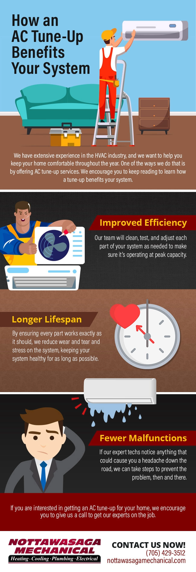 Our team at Nottawasaga Mechanical has extensive experience in the HVAC industry, and we want to help you keep your home comfortable throughout the year. One of the ways we do that is by offering AC tune-up services. We encourage you to keep reading to learn how a tune up benefits your system.